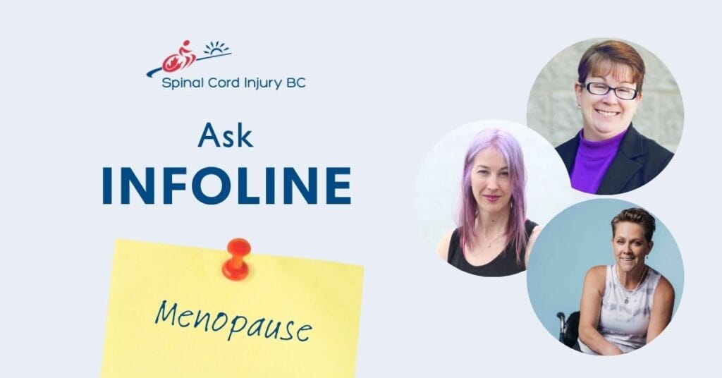 “Are my UTI and vaginal symptoms gynecological, urological, or neurological? My doctors are eager to blame perimenopause but nobody’s really certain what to do about it.” SCI BC’s InfoLine team answers this question with the help of Margaret Conquest, a tetraplegic peer and a health promotion advocate.