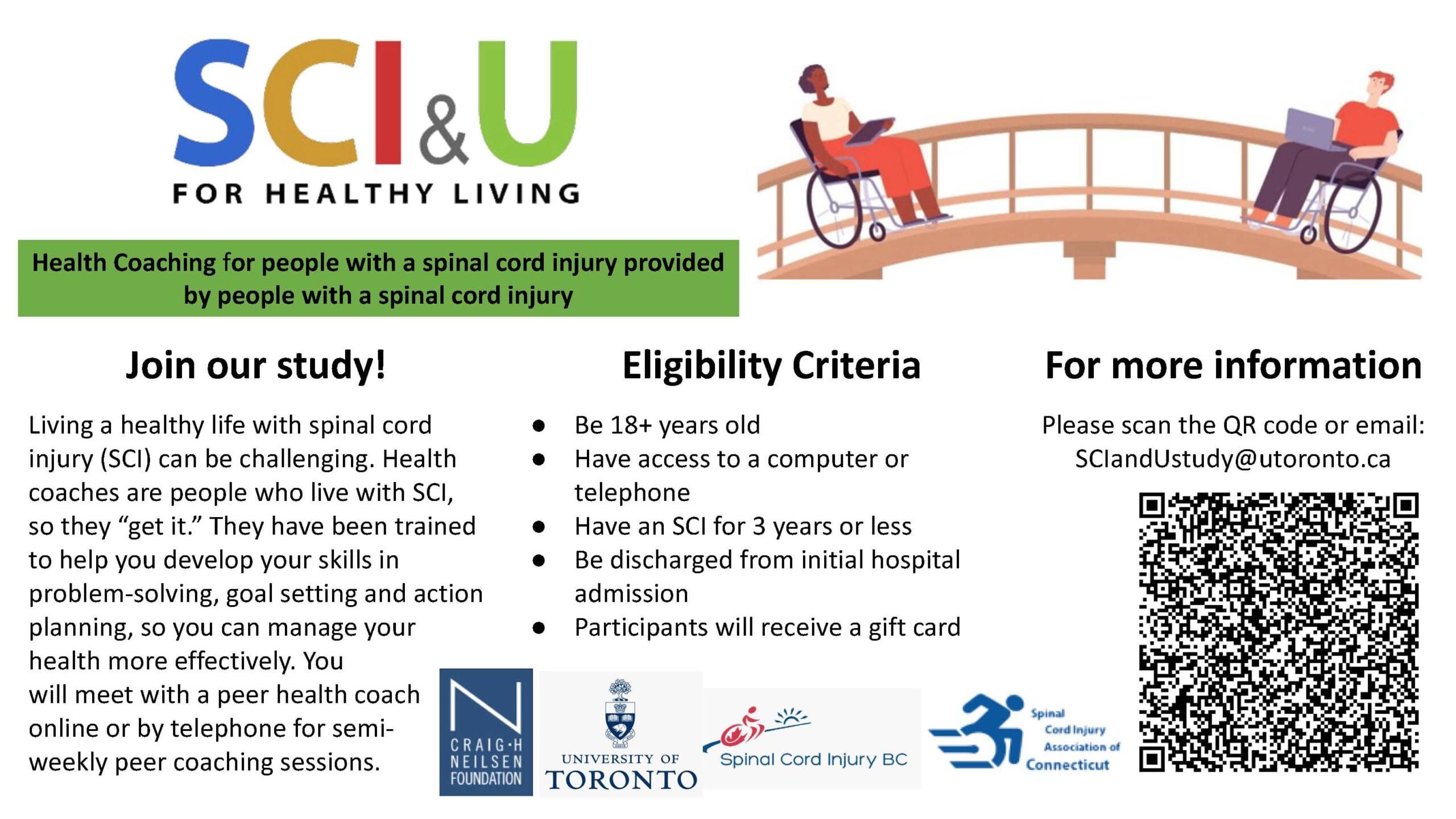 Living a healthy life with SCI can be challenging. Health coaches are people who live with SCI, so they “get it.” They have been trained to help you develop your skills in problem-solving, goal setting and action planning, so you can manage your health more effectively. You will meet with a peer health coach online or by telephone for semi-weekly peer coaching sessions.